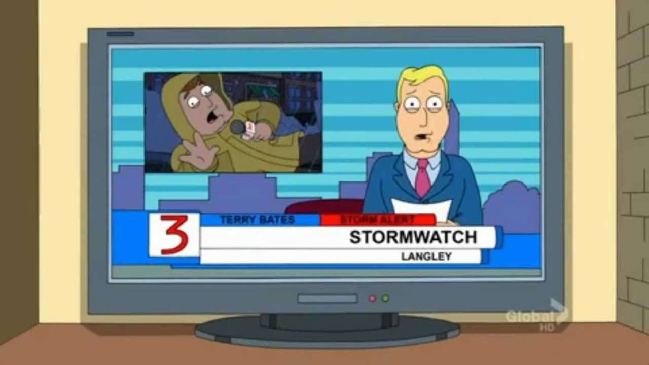 "Hurricane!" is the second episode of the eighth season of the animated comedy series American Dad!, an episode produced for season 7. It first aired on Fox in the United States on October 2, 2011. The episode plot mainly revolves around the Smith family, who prepare for evacuation in response to an oncoming hurricane. Reluctant to leave his home, Stan encourages his family to ride out the storm in their house with him. The hurricane sends a flood to the city of Langley Falls, which puts the entire family in danger.